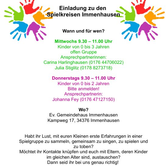 Einladungen zu den Spielkreisen Immenhausen